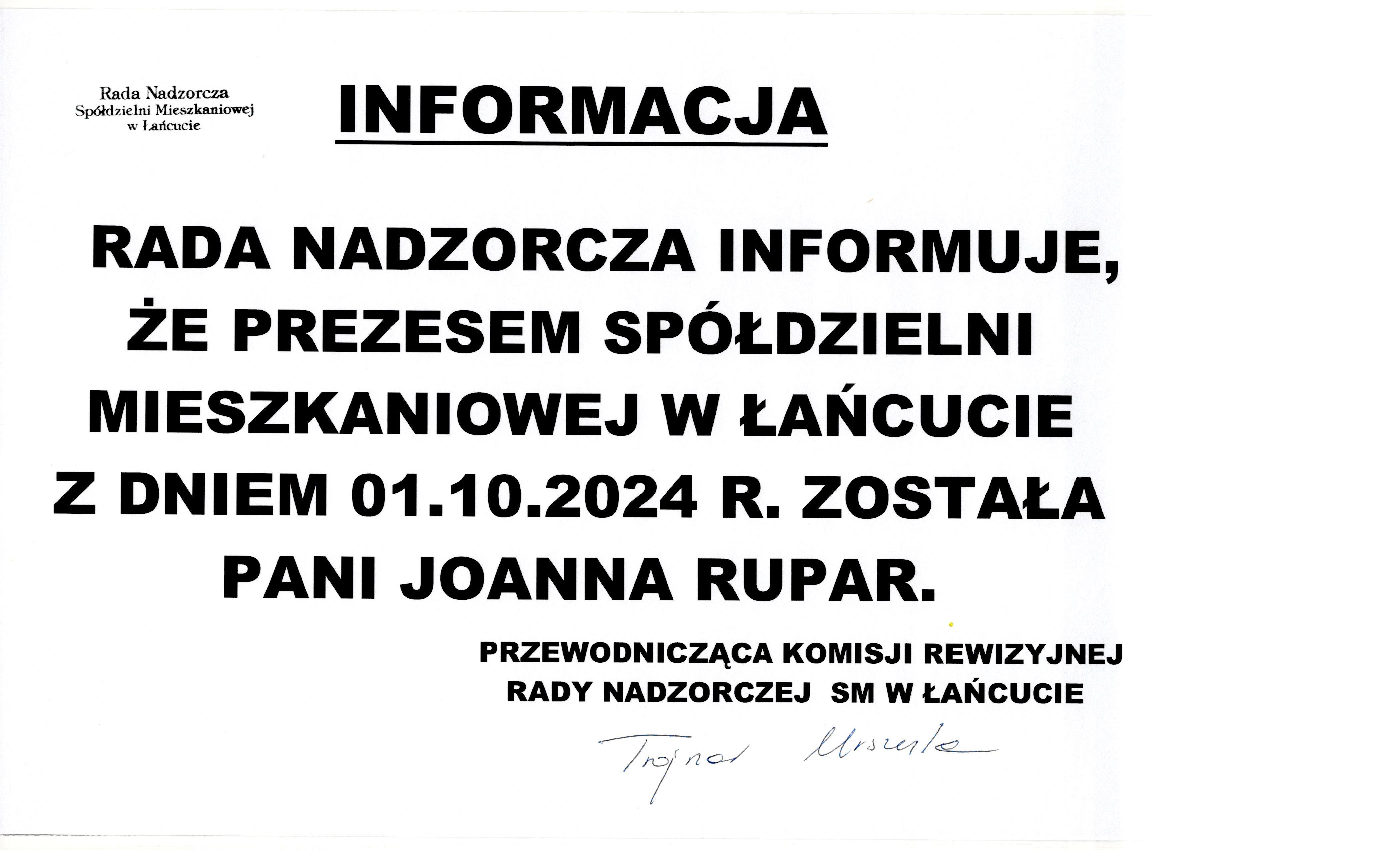 Informacja Rady Nadzorczej o Stanowisku Prezesa